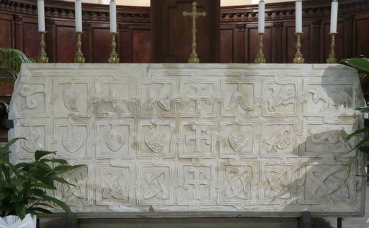 In 1964 works made to relocate an altar led to the discovery of a marble relief which was dated ca 800 on stylistic grounds. It might have been a section of a parapet which separated the altar from the nave which was typical of the design of early churches. The decoration is mainly based on crosses and roughly carved Solomon's knots but it includes also some animals (lion, unicorn, bird and a snake) which had a symbolic Christian meaning (see similar reliefs at S, Sabina in Rome).