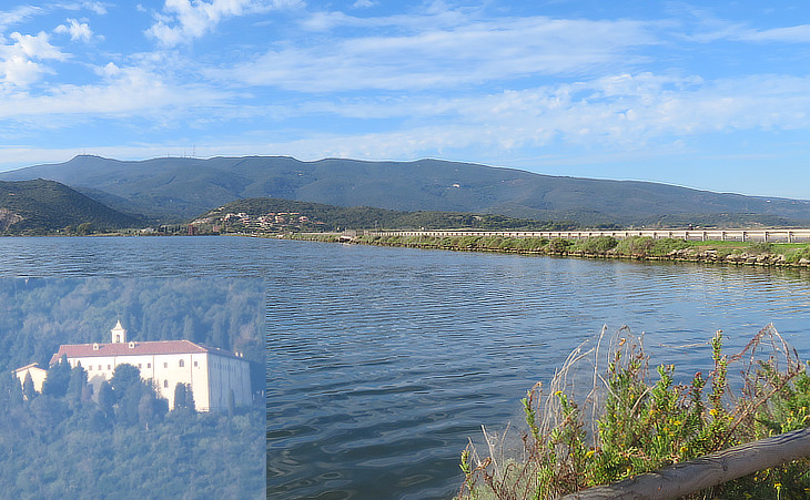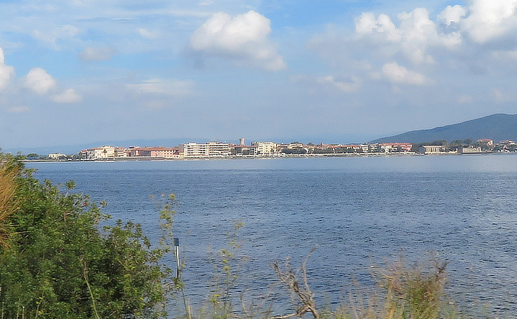 View of Orbetello from the western (Mount Argentario) side of the lagoon