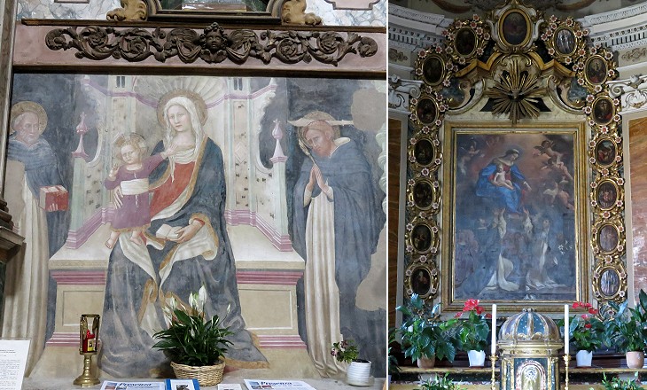 S. Marco: (left) XVth century fresco; (right) painting by il Guercino (1643)