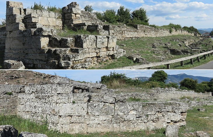 The walls we see today are those built by the Lucani which were in part modified when Paestum fell under the hegemony of Rome. Their southern section most likely stands on the fortifications built by the Greeks to protect the southern temples in the oldest part of the town.