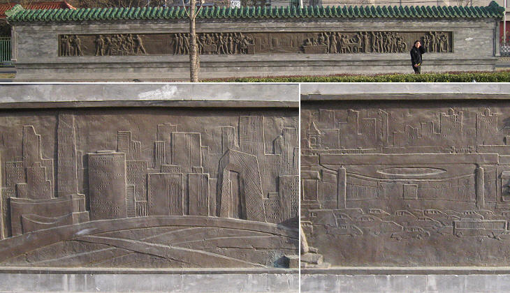 Relief celebrating contemporary Beijing (and its traffic)