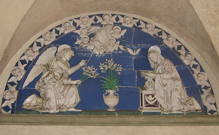 The Annunciation by Andrea della Robbia in the interior of the building