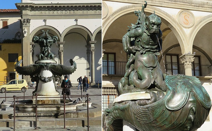 An Italian piazza is not complete without a fountain; maybe this was the rationale behind the decision of Grand Duke Ferdinand II to place in Piazza SS. Annunziata two amazing fountains by Pietro Tacca which had been designed to embellish Leghorn, the port of the Grand Duchy. This explains why, although being impressive for their craftsmanship, the two fountains do not entirely fit into the harmonic Renaissance design of the square.