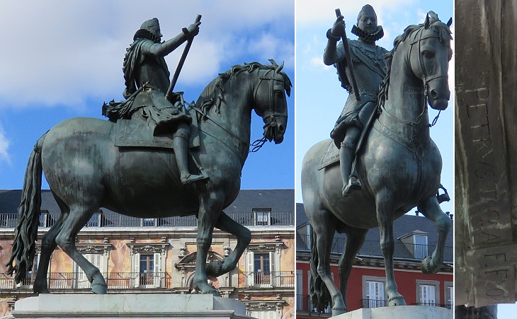 The Grand Dukes of Tuscany followed a careful foreign policy aimed at keeping good relations with both France and Spain. Grand Duke Cosimo II who succeeded his father Ferdinand I in 1609 decided to make a gift to King Philip III of Spain, his brother-in-law, and he commissioned Pietro Tacca with a bronze equestrian statue which is very similar to that in Piazza SS. Annunziata. The sculptor managed to sign his work on the horse's girth "PETRVS TACCA F. FLORENTIAE 1614".