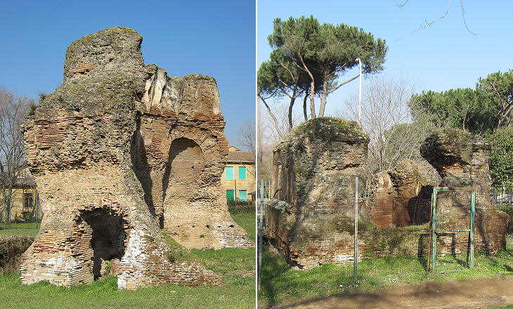(left) Hall with an apse (IInd century AD); (right) tomb on the other side of Via Prenestina