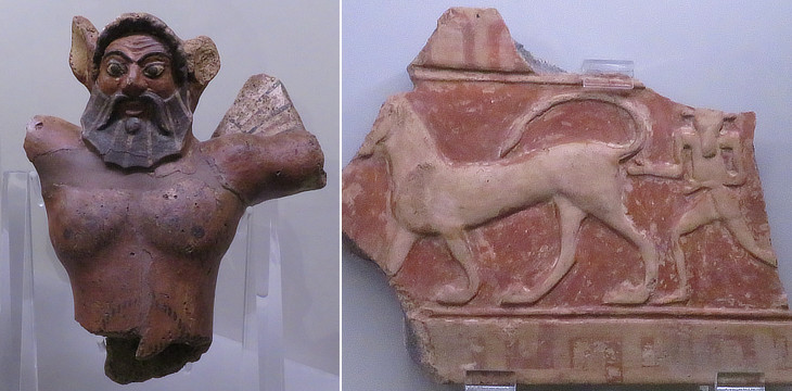 Museo Nazionale Romano: terracotta decorations of a temple (left) and of a town building (right) at Gabii (VIth century BC)