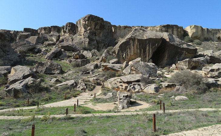 The reliefs are spread over Qobustan, a region south of Baku which today is scarcely populated. It includes some remote inland mountains one of which is known as Yazylytepe (Hill with writing), a name which calls to mind Yazilikaya (Rock with writing) at Hattusa in Anatolia which houses many complex Hittite reliefs.