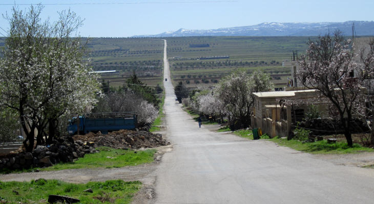 View of the countryside from ed-Deir (early March 2011); Jebel al-Druze on the horizon line