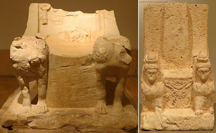 National Museum of Beirut: (left) throne of Astarte from the Temple to Eshmun; (right) another throne of the goddess. Perhaps a "baetylus", a sacred stone, was placed on them