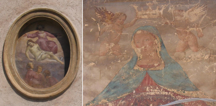 Sacred images: (left) in Piazza Gramsci; (right) Oratorio della Misericordia