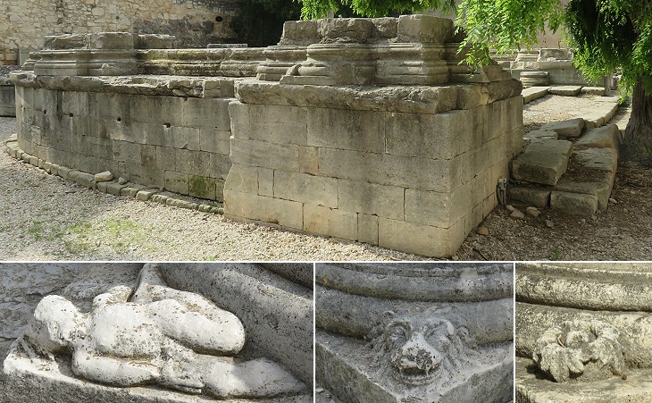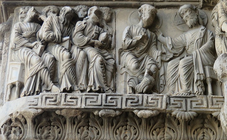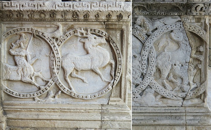 The subjects and design of the reliefs on the lintel were most likely influenced by those which were visible in the early Christian sarcophagi of Arles.