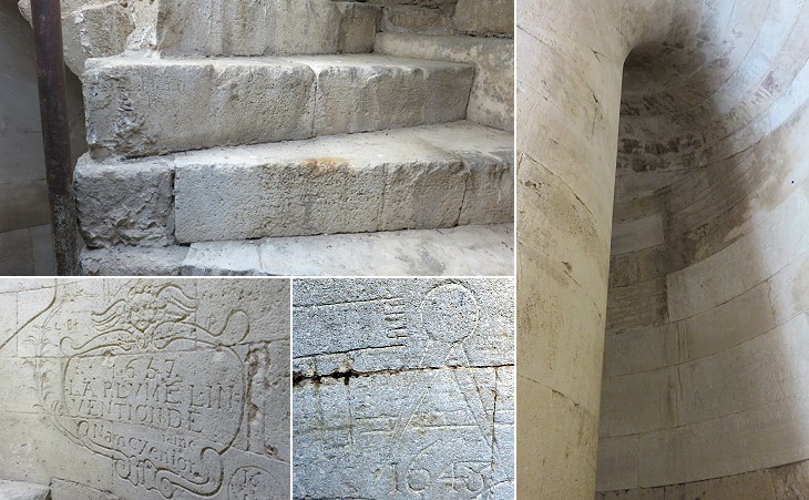 Vis de Saint-Gilles: interior and XVIIth century graffiti by guilds of master masons