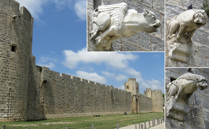 Walls between Porte de la Reine and Tour de Villeneuve and bestiary at Porte de la Reine