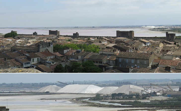 Lagoon and salt-works seen from Tour Constance at Aigues-Mortes