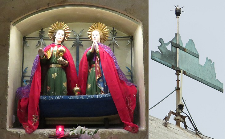 The two saints inside Notre-Dame-de-la-Mer and on its wearthervane
