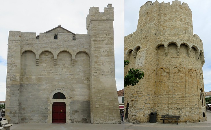 Notre-Dame-de-la-Mer: (left) façade; (right) apse