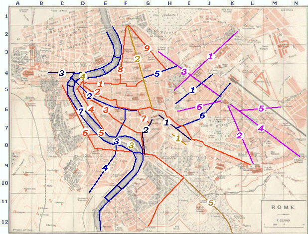 the main Italian cities (Milan, Turin, Florence, etc). It linked the central Railway Station (Stazione Termini) with Piazza Venezia.