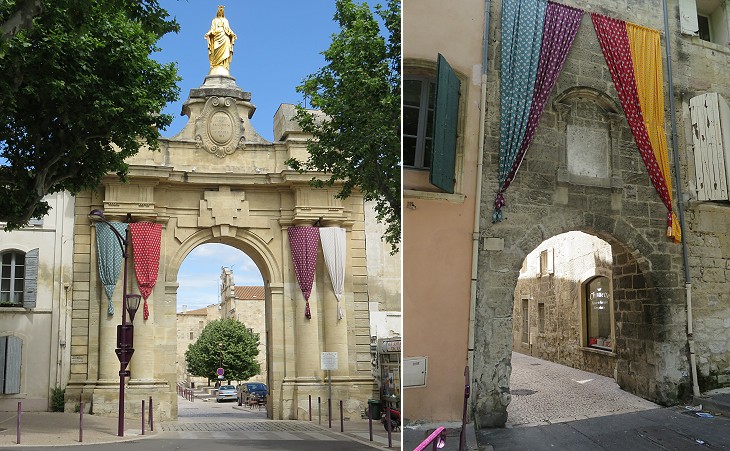 (left) Porte Saint-Jean (the statue was placed in 1866); (right) Porte Jarnègues, named after a nearby lost islet of the river which housed the harbour of the town