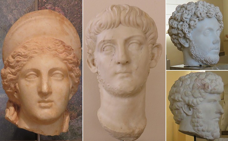 National Archaeological Museum of Tarragona: (left) Juno or another goddess (IInd century AD) ; (centre) Nero, son of Germanicus; (right) Emperors Marcus Aurelius (above) and Lucius Verus (below)