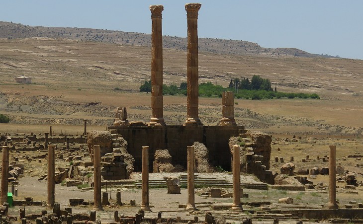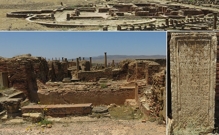 An inscription indicates that the portico of the square was restored in 364-367 by Emperors Valentinian I and Valens. Their names appear also on a basilica at Cuicul which indicates that the historical sites of the pagan towns were still cared for by the first Christian emperors. You may wish to see another very large Capitolium at Uthina, in today's Tunisia.