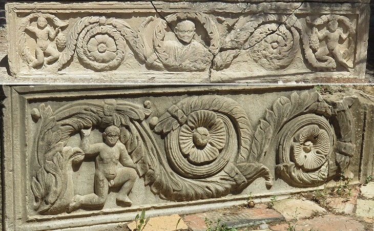 Old catalogues of the museum indicate it housed a very large number of beautiful mosaics which were decorated with acanthus leaf motifs. From the few works of art outside the building one can see that acanthus leaf motifs were often used also in the decoration of reliefs, as at Sertius' Market.