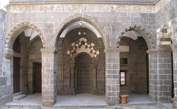 Ulu Cami, the Great Mosque of Diyarbakir is hardly regarded as a "must see" in a tour of Turkey, yet it would impress the general public and not only those who have a special interest in Islamic art. The buildings around the courtyard which leads to the prayer hall are a unique example of reutilization of ancient Roman structures.