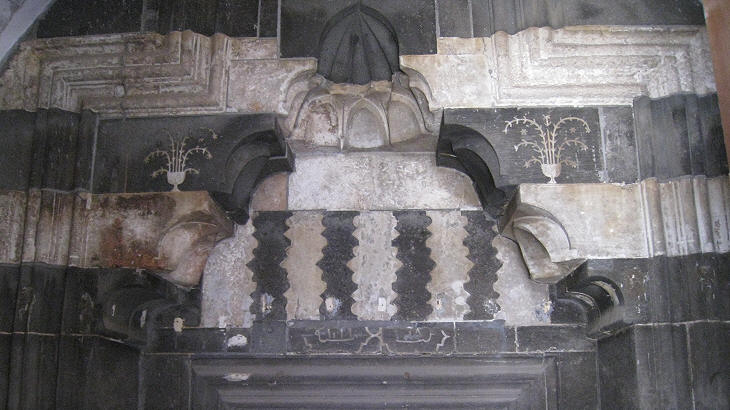 The view of the rectangular courtyard is impaired by the oversized XIXth century roof of a sadirvan, yet the attention of the visitor is immediately captured by the design of the western portico.
