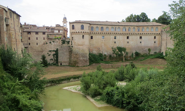 The town and Palazzo Ducale seen from the other side of the River Metauro