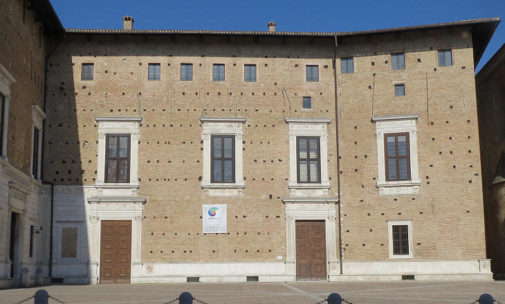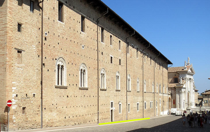 Palazzo Ducale was not completed during the lifetime of Federico da Montefeltro (d. 1482), but in the XVIth century by the della Rovere, one of whom married a daughter of Federico. In 1631 the Duchy of Urbino was completely incorporated into the Papal State and Palazzo Ducale was in part modified, as it was no longer used as the residence of a sovereign.
