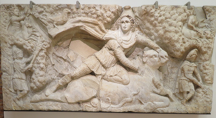 Museo Nazionale Romano: relief depicting Mithra slaying the bull which was found in 1964 near Tor Cervara (end of the IInd century AD - start of the IIIrd century)