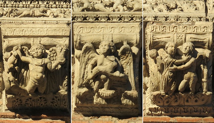 Three capitals of the entrance front: that to the right portrays Cupid and Psiche (see similar reliefs at Basilica di Massenzio)