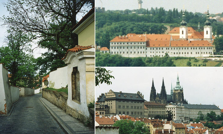 (left) The upper part of Vlasska; (right-above) Strahov Norbertine Monastery; (right-below) Hradcany