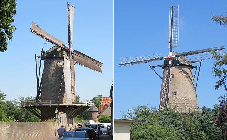 Windmills in the environs of Xanten: (left) Kriemhild-Muhle (still working!); (right) Siegfried-Muhle inside Xanten Archaeological Park, now a coffee house