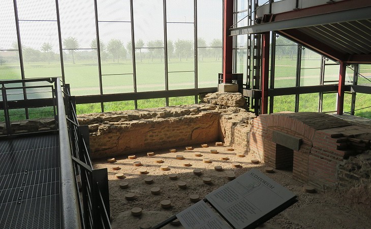 In the 1970s a regional council developed a historical park on the site of the ancient town. It is not an archaeological area: Almost the entire area of the ancient city is today covered by the park, whose Roman buildings give visitors a better idea of life in Colonia Ulpia Traiana than any history book. (..) Children of all ages can let their imagination run wild on the large timber adventure playground, while the new water playground with its ditches, sluices, punps and a large Archimedean screw is sure to make a big splash. The House of Roman Games invites you to discover the most popular Roman pastimes in any weather. The Roman restaurant in the Hostel offers coffee as well as culinary delights prepared from ancient recipes.