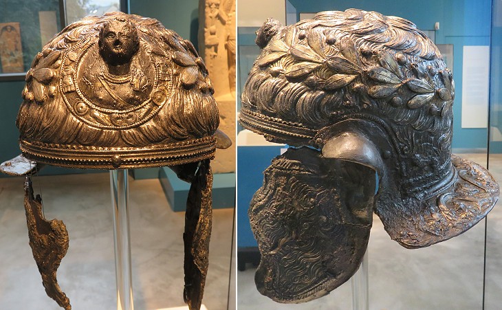 Rheinische Landesmuseum Bonn: a parade cavalry helmet from Xanten (ca 50 AD); you may wish to see other fine Roman helmets at Frankfurt and in Austria and Britain